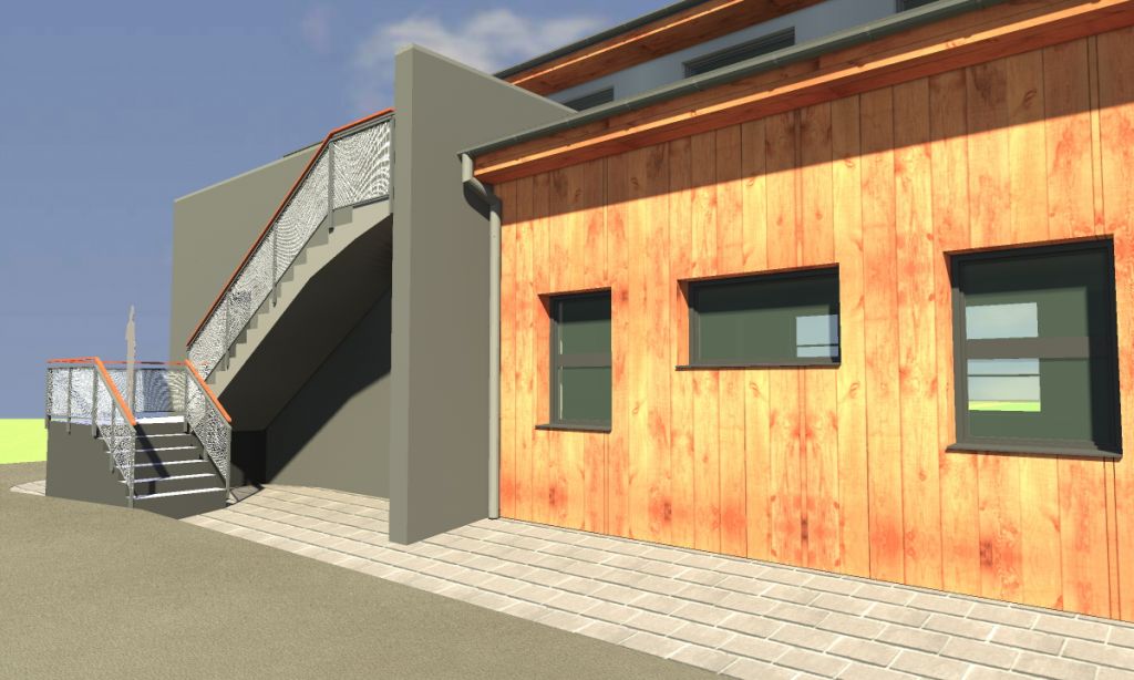 Ze strany výletiště, ze stávajících přístřešků bude provedena přístavba ve stejném architektonickém vzhledu (obloukovitě zakončená, s dřevěným obkladem) tak, aby byla navýšena kapacita sálu.