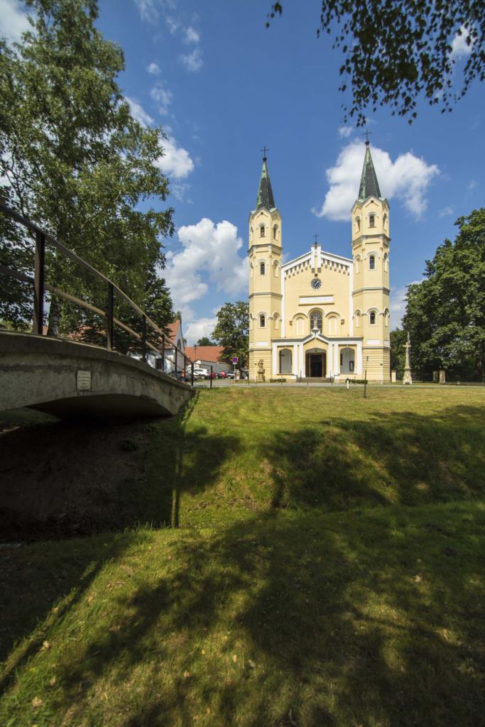 Místo pro kostel bylo zvoleno v samé blízkosti zámku a 27. srpna 1810 se odehrálo slavnostní položení základního kamene. Kostel byl původně postaven bez věží, ty byly přistaveny r. 1863. Jsou 30 m vysoké. Záznamy v kronice praví, že jejich hroty jsou v úrovni dlažby novojičínského náměstí.